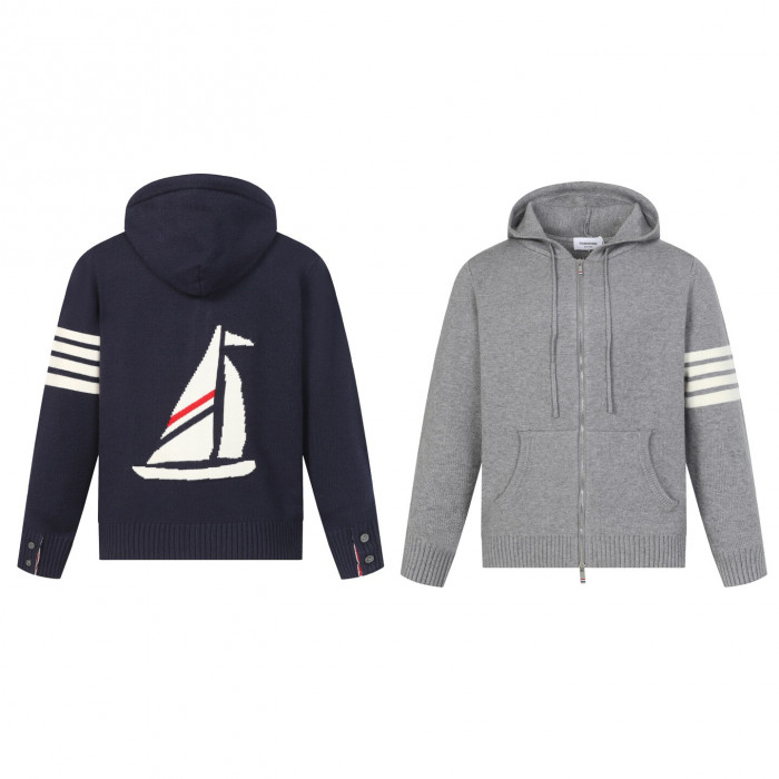 톰브라운 메리노 저지 세일 보트 인트라시아 사선 집업 후드
