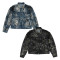 강한 하드 워싱과 데미지 가공이 돋보이는 데님 자켓입니다.