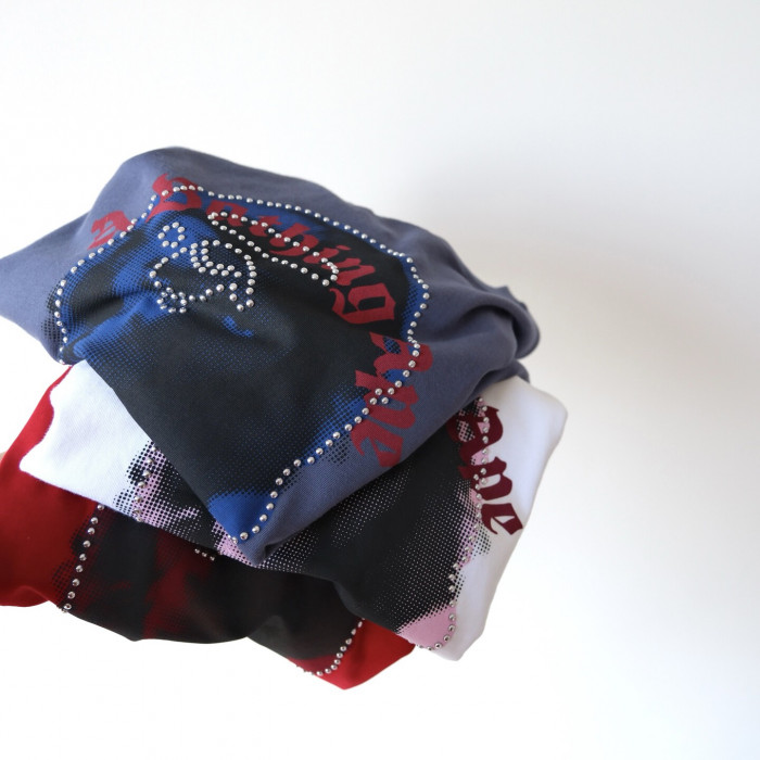 베이프 가먼트 다이 라인스톤 에이프 헤드 릴렉스드 핏 티셔츠