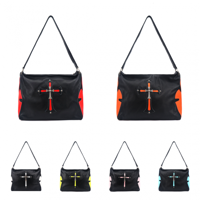925 실버 소재의 십자가 메탈 장식이 포인트인 크롬하츠의 숄더백