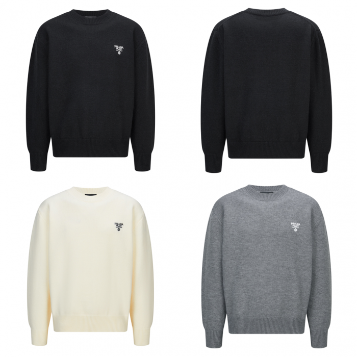 미니멀한 디자인과 고급스러운 소재가 돋보이는 프라다의 자수 로고 크루넥 니트입니다.