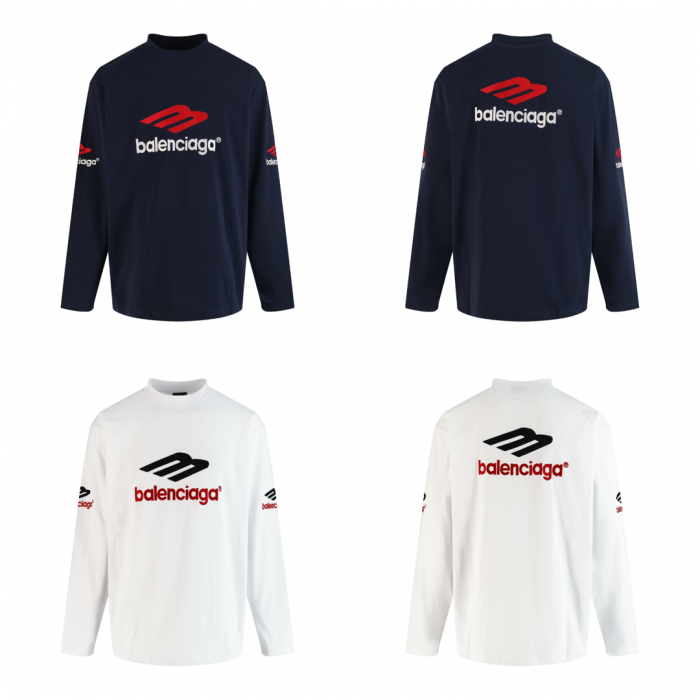 부드러운 텍스처와 독특한 OS 실루엣이 매력적인 발렌시아가 3B 롱슬리브 티셔츠입니다.