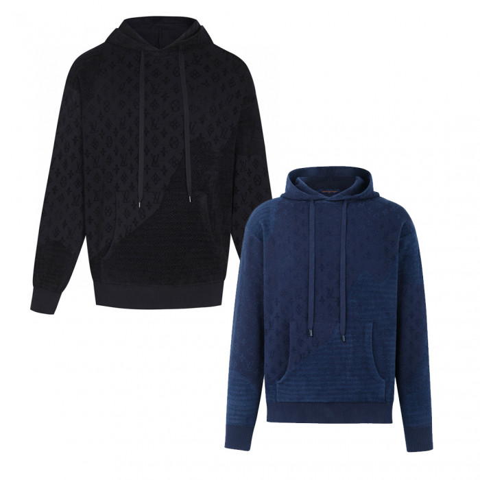 루이비통 특유의 모노그램 패턴을 전면에 적용한 그래픽 자카드 후디입니다.