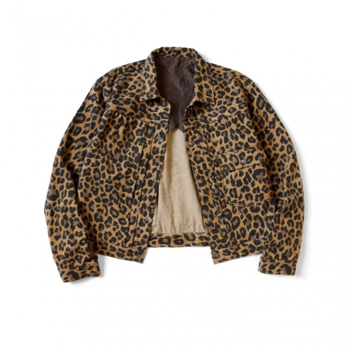 레오파드 패턴 기반의 빈티지 감성이 강하게 드러나며, 프론트 포켓 디테일과 클래식 카라 디자인으로 포인트를 더했습니다.