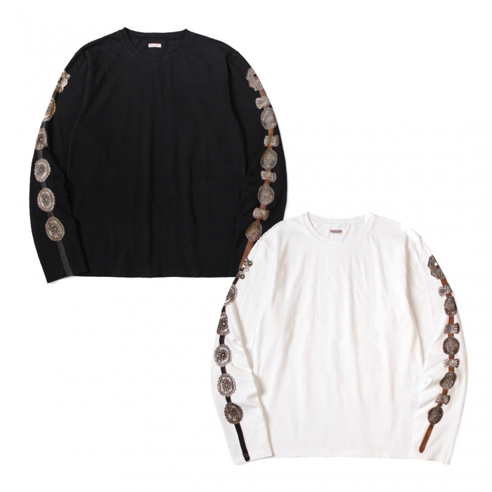 캐피탈 특유의 감성이 담긴 콘초 벨트 그래픽이 양 소매 전체에 포인트로 들어간 롱슬리브 티셔츠입니다.